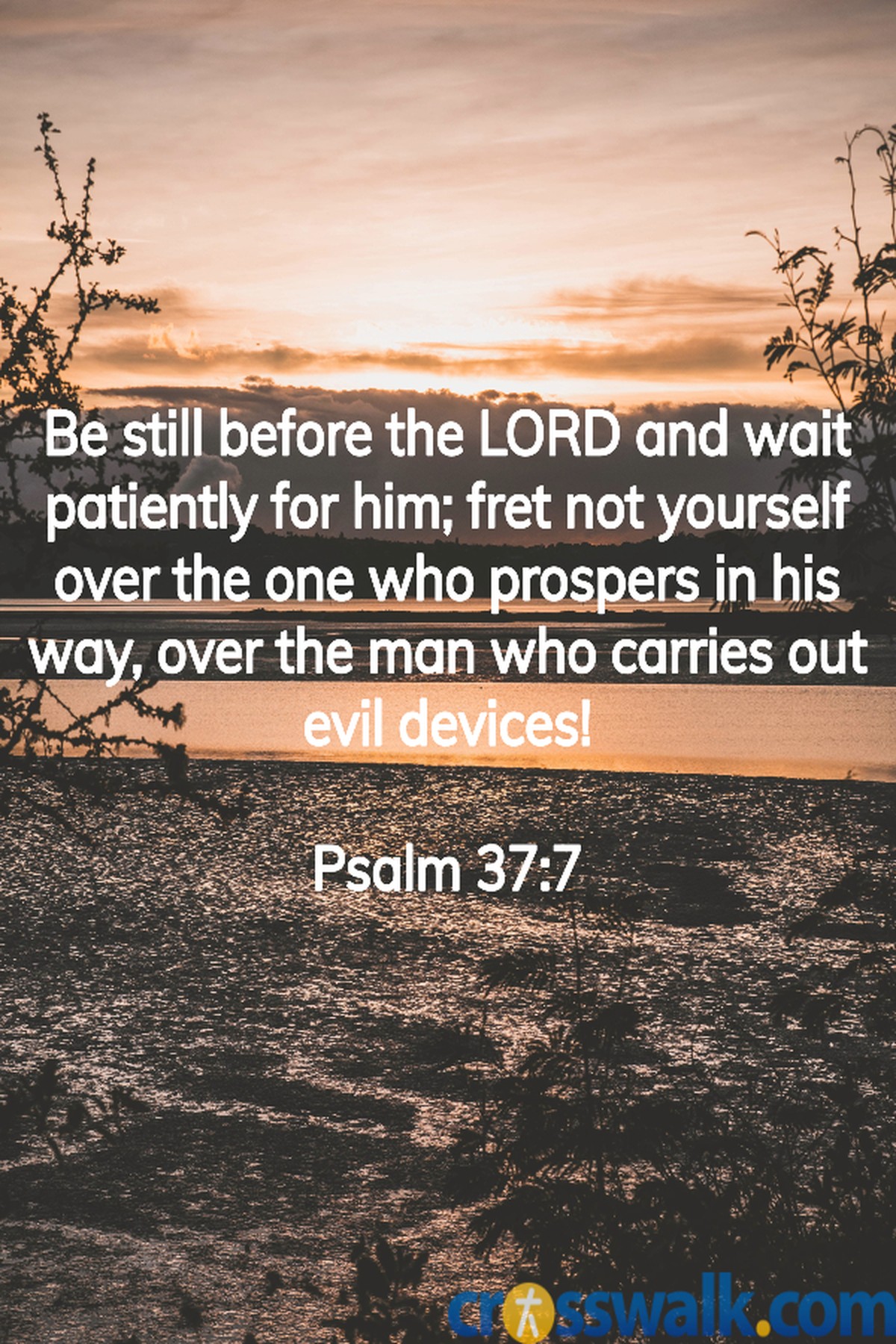 "Be still before the Lord and wait patiently for him; fret not yourself over the one who prospers in his way, over the man who carries out evil devices!" ~ Psalm 37:7