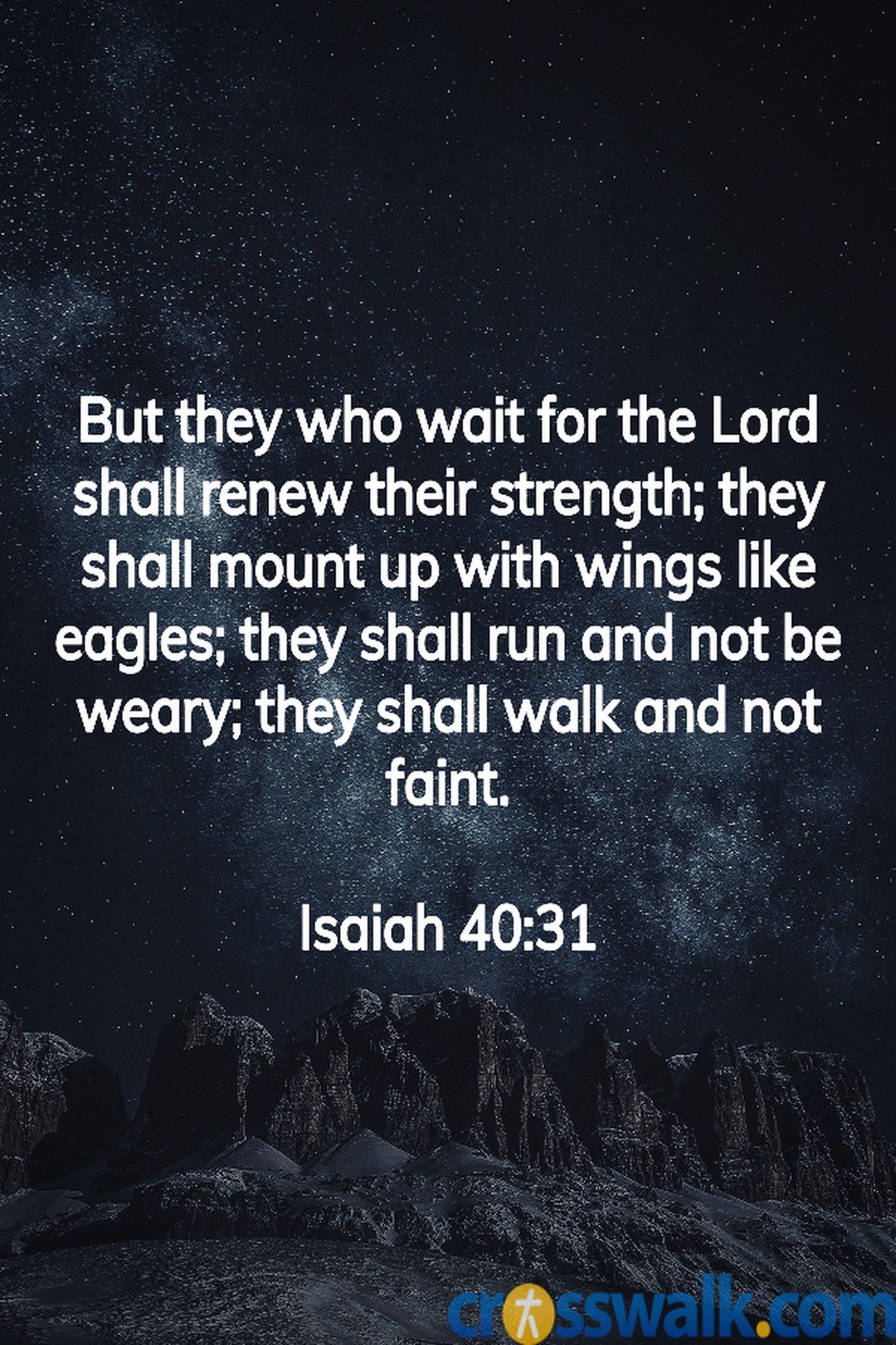 "But they who wait for the Lord shall renew their strength; they shall mount up with wings like eagles; they shall run and not be weary; they shall walk and not faint." ~ Isaiah 40:31